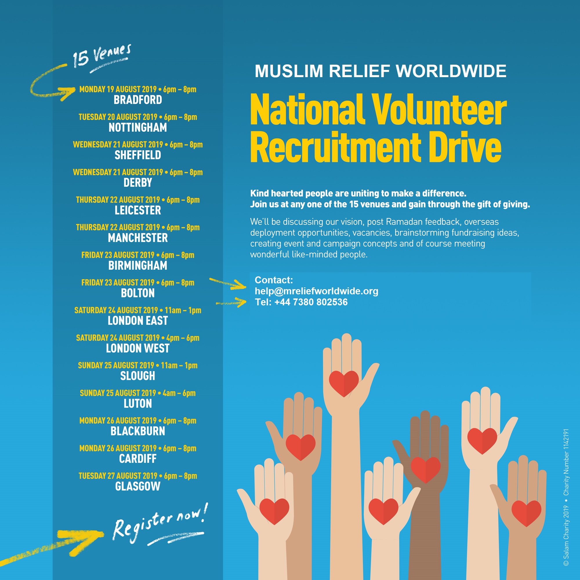At each venue we'll be exploring the charity’s vision, going through post Ramadan feedback, overseas deployment opportunities, vacancies, brainstorming fundraising ideas, creating event and campaign concepts and of course meeting wonderful like-minded people.